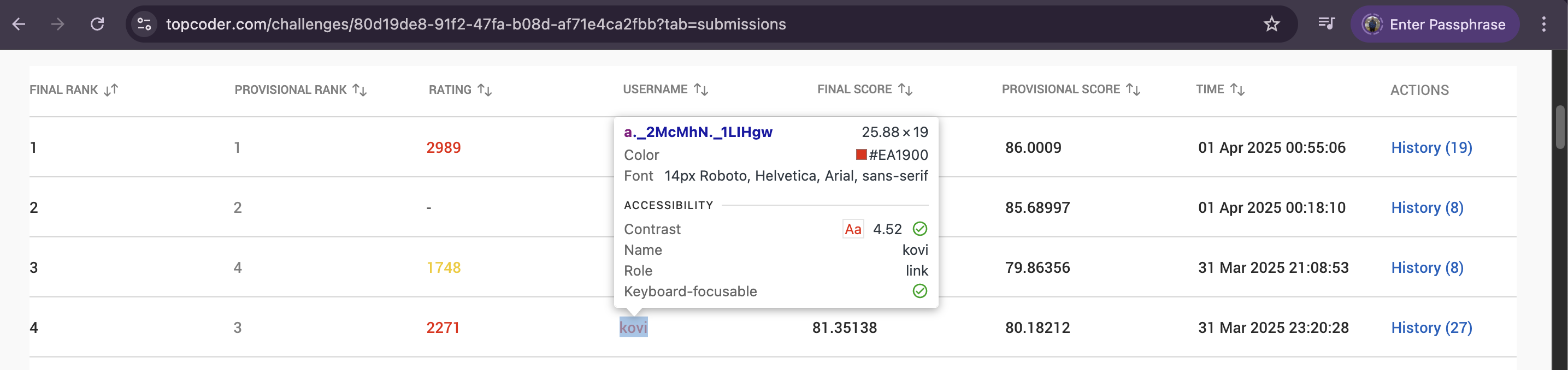 https://www.topcoder.com/challenges/80d19de8-91f2-47fa-b08d-af71e4ca2fbb?tab=submissions