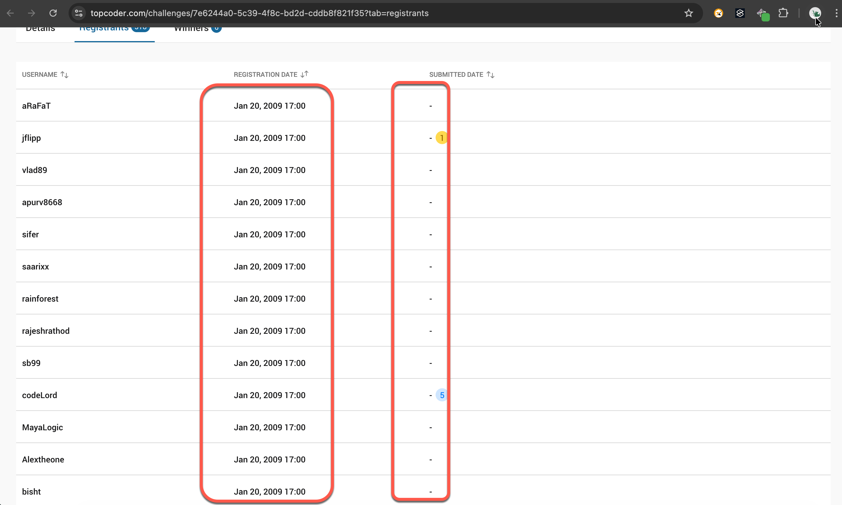 Also the registration date for that particular challenge is all same. Just wondering what could have caused the dates to be incorrect or missing.